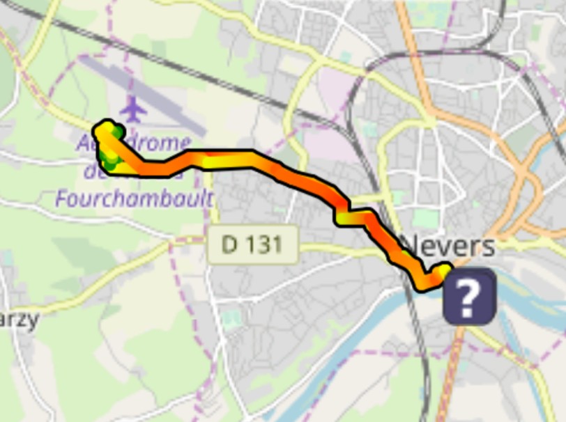 J'ai prévu des chambres à air de rechange mais pas une par jour.... Direction le Decathlon le plus proche (et le seul du parcours) pour racheter des chambres à air, des lunettes pour Ju des oreillers gonflables et du gaz (10km en cadeau). Tout petit détour via l'aérodrome de Nevers pour saluer les copains parachutistes !