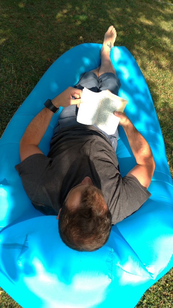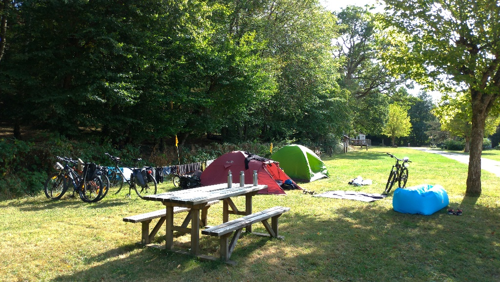 J'ai trouvé un bout de Wi-Fi 😉 Coin lecture, réparation du paquet de sucre, guêpes... Une fin de journée tranquille au camping.