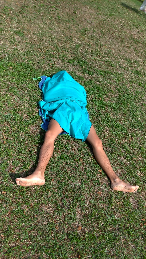 Après montage en mode ninja, direction la base de loisirs pour la baignade (toujours en vélo)