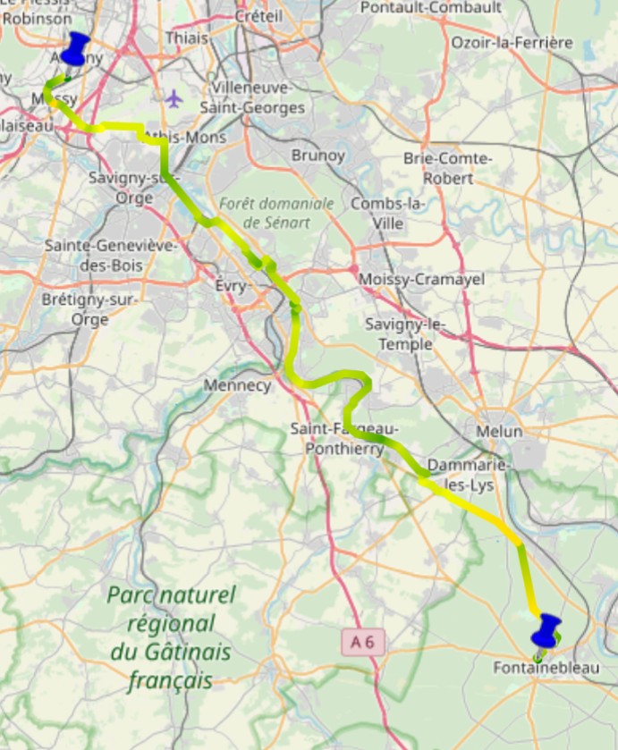 Il en faut un, le voici, c'est le dernier jour. Longue étape, grosse chaleur. Même pas peur. Pas grand chose à dire, paysages variés et les bords de Seine peuvent être très beaux (hypocritement pas de photo de la N7)